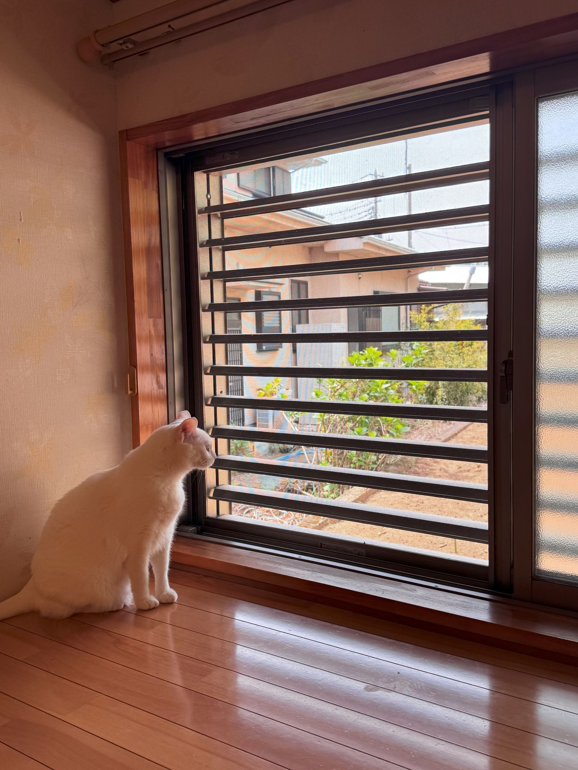 室内側 猫がぶら下がりボロボロで結露でカビの生えるカーテンを取外し。視線を遮りながら換気が出来風を採り入れ毎日爽やかに過ごしています (お客様の声)